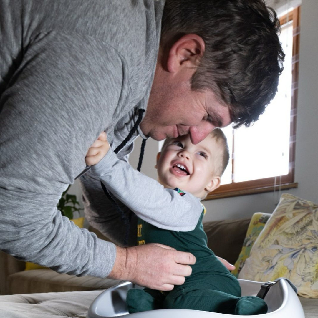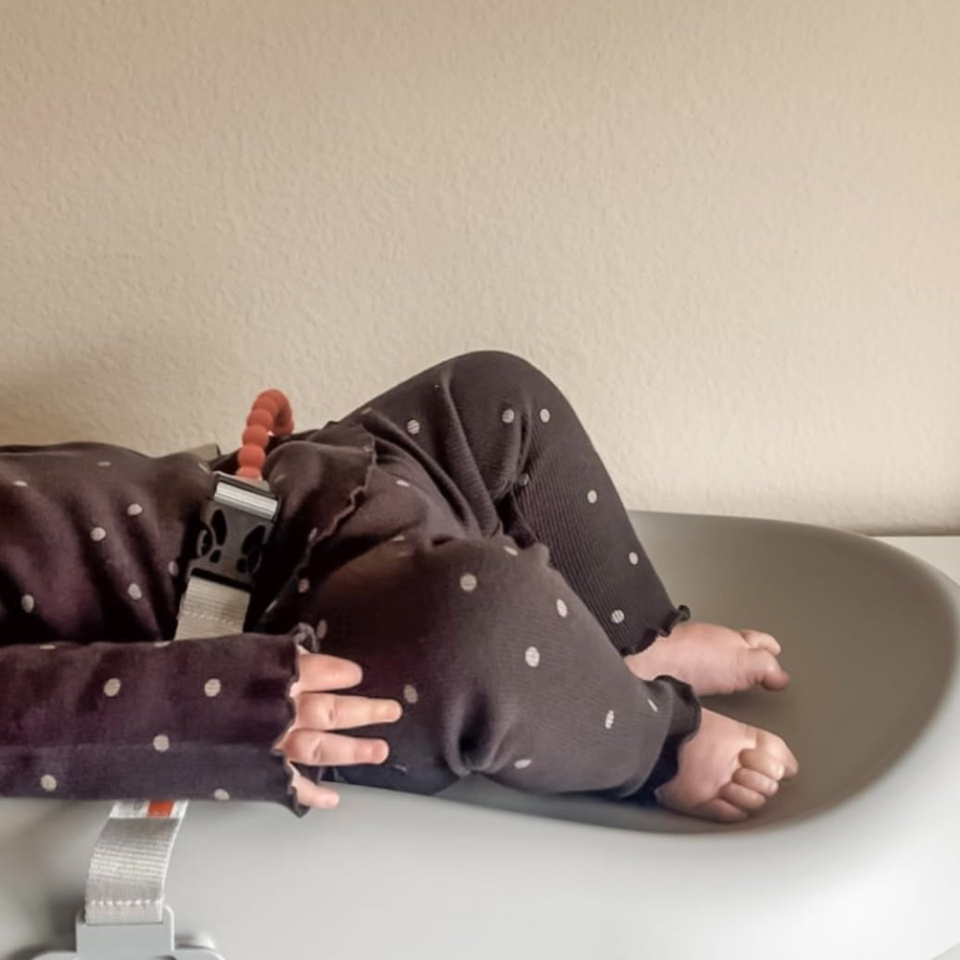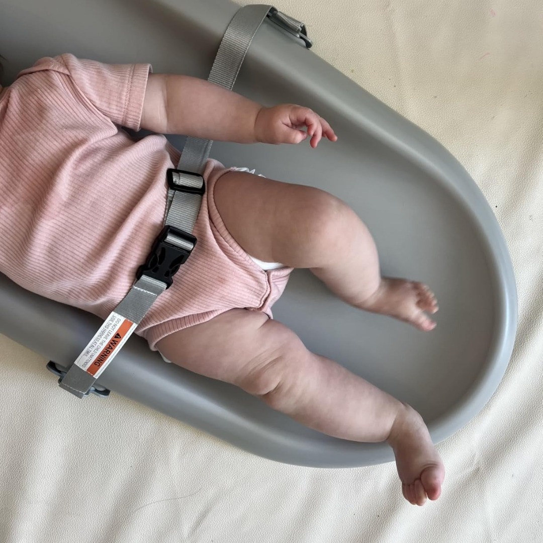 The non-slip base is designed to minimize movement. Always place on a dry, level surface and keep one hand on your baby.